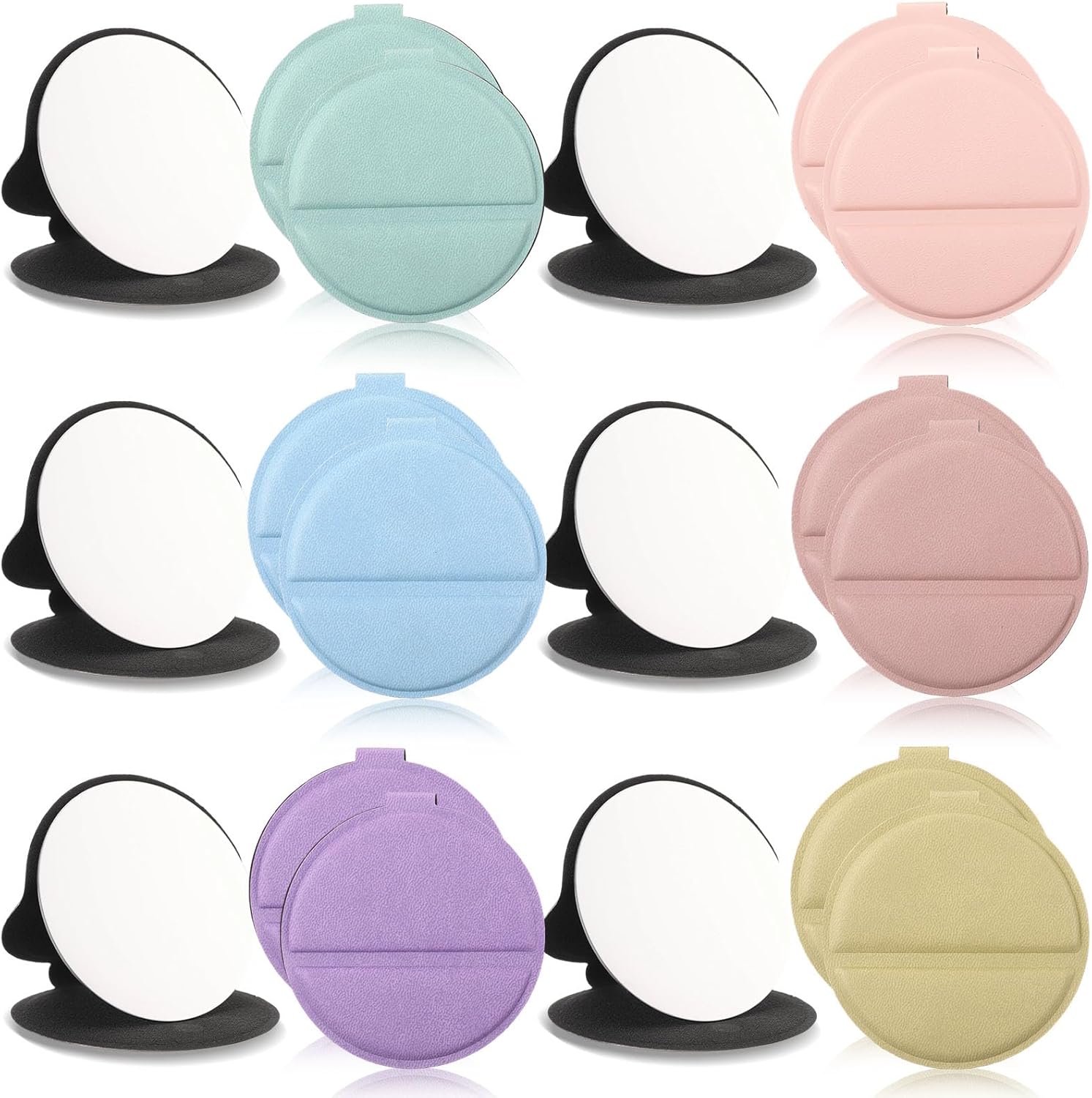 Features: Portable Mirrors: These Compact Portable Mirrors are a practical addition to your daily essentials. They are small enough to fit into different purse or pocket. Versatile Application: Whether you're at home, in the office, or out camping, these mirrors provide a clear view for your grooming needs. Specifications: Material: PU Color: Cherry Blossom Pink, Moonlight White, Green, Norwegian Blue, Mocardi Grey, Mocha Brown Size: About 4.1 x 2.8 inches Package includes: 24 X Hand Mirror Notes: Manual measurement, please allow slight errors on size. The color may exist a slight difference due to different screen displays