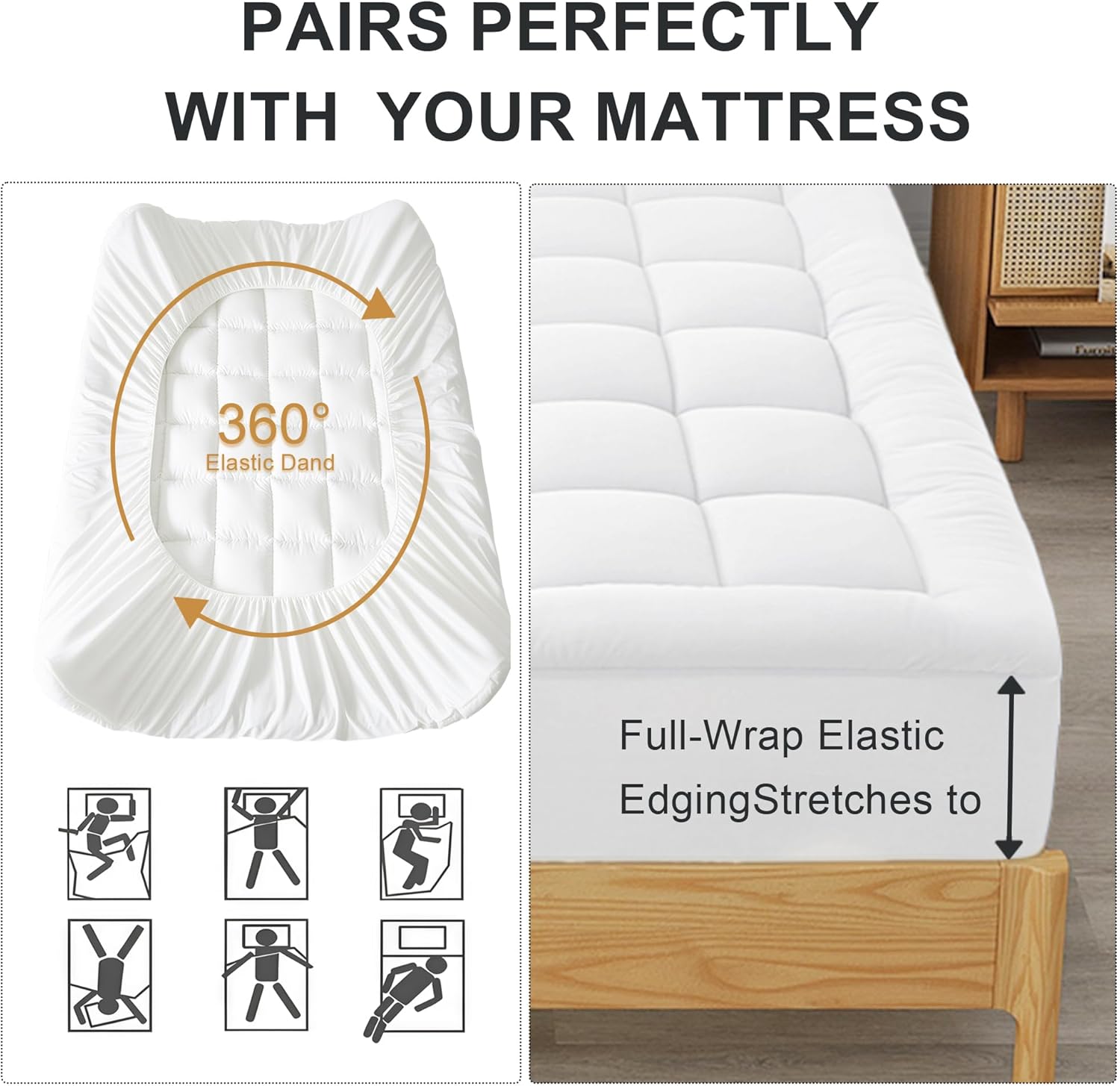 | Special Feature | Breathable, Deep Pocket, Pillow Top, Quilted, Tips:The mattress topper is packed in a vacuumed bag, recommend to spread it in the air or in the sun for a few days before use ,so it will return to normal thickness and fluffy again |