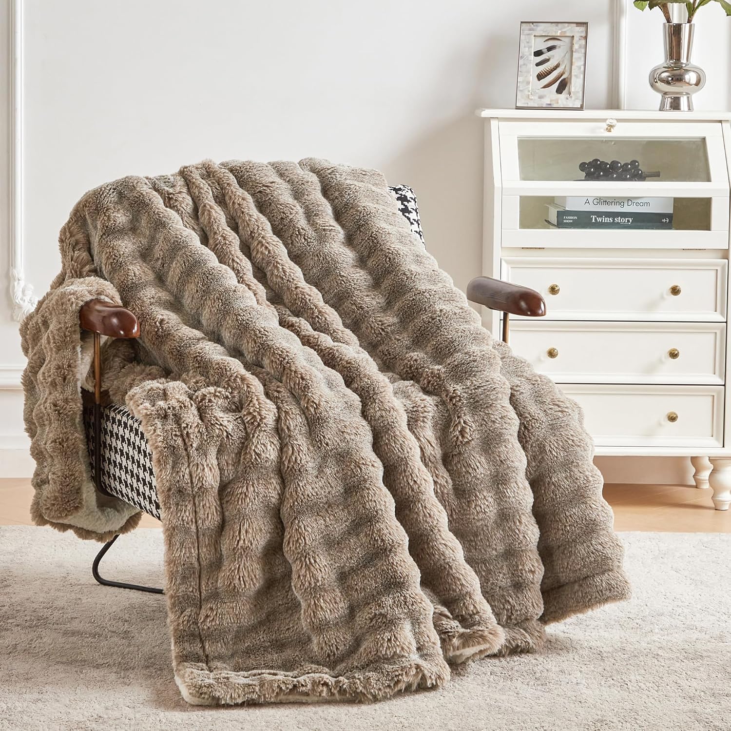 Serenhom Cozy and Furry Faux Fur&Sherpa Throw Blanket for Couch, Soft and Warm Plush Sherpa, Reversible Blankets for Sofa and Bed,All Season
