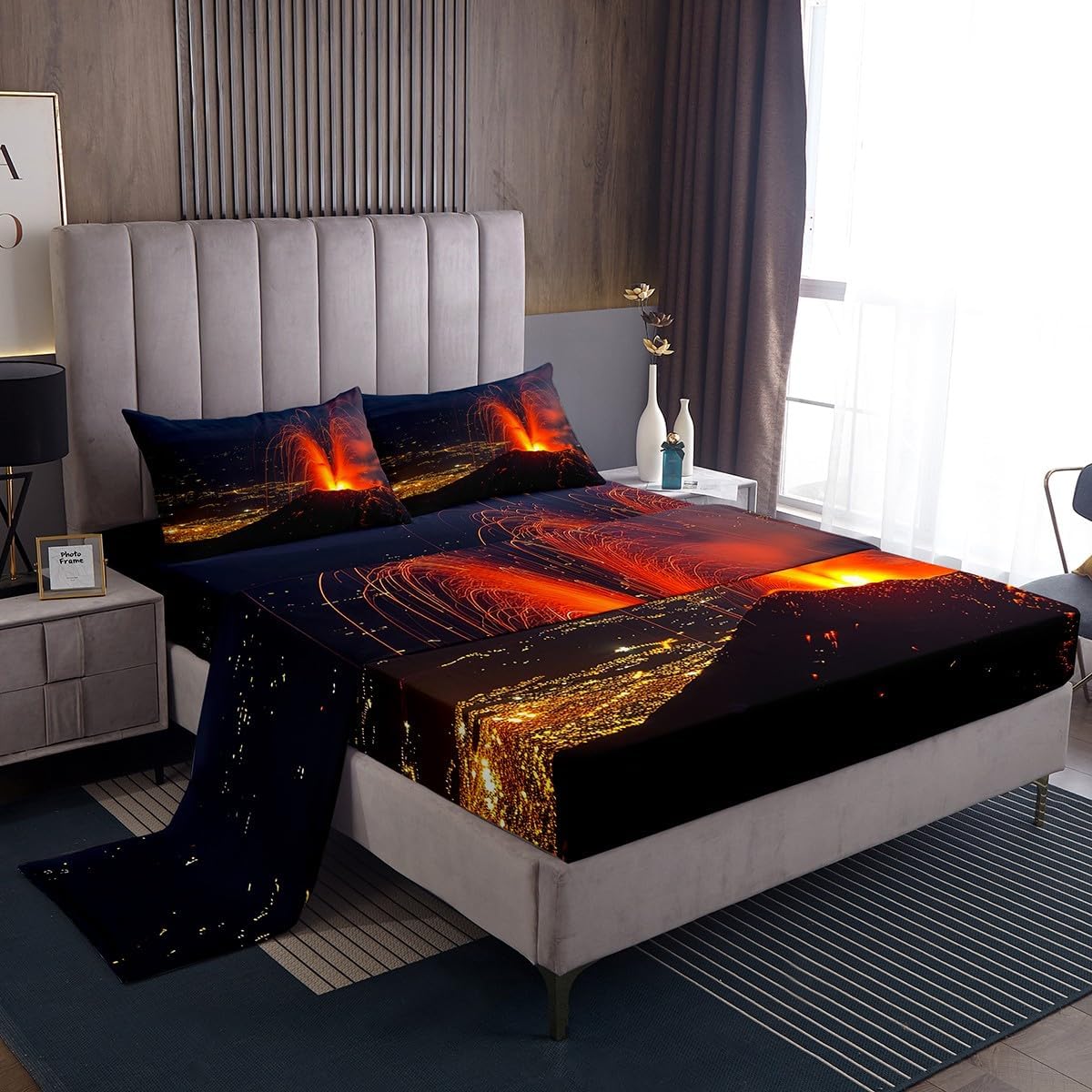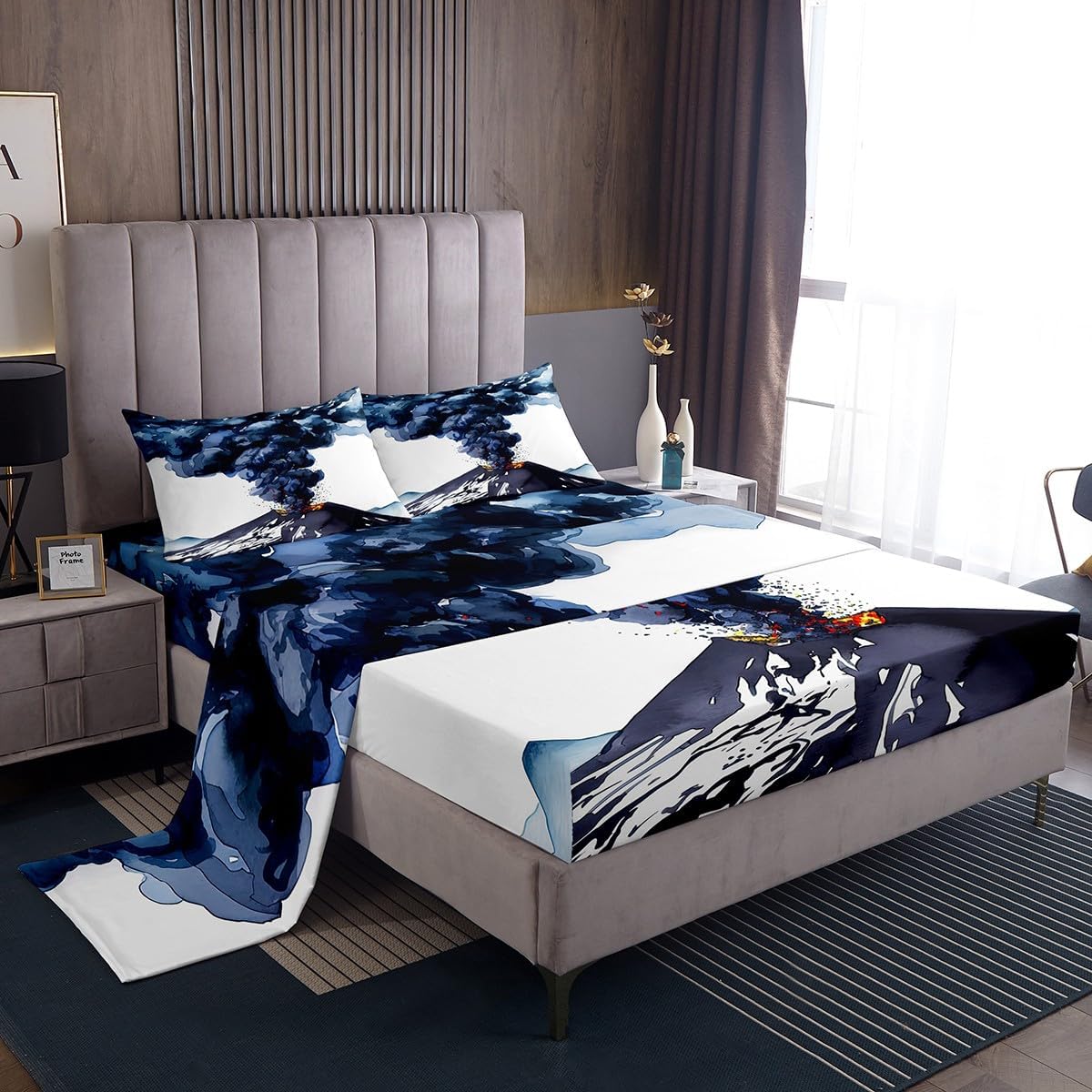 We Have Been Listening to The Opinions of Our Customers From The Reviews,So We Developed a New Bed Sheet Set and Added Flat top Sheets to Meet The Needs of More People.Our Bedroom Decor Bed Sheets Set Look with The Vivid Stylish and Elegant Print Bedding Set. Size Information Twin Size Includes: 1 Pillowcase(20”x30”) and 1 Fitted Sheet(39”x75”x16") and 1 Flat Sheet 96x66" Full Size Includes: 2 Pillowcases(20”x30”) and 1 Fitted Sheet(54”x75”x16") and 1 Flat Sheet 96x81" Queen Size Includes: 2 Pillowcases(20”x30”) and 1 Fitted Sheet(60”x80”x16") and 1 Flat Sheet 102x90" King Size Includes: 2 Pillowcases(20”x35”) and 1 Fitted Sheet(78”x80”x16") and 1 Flat Sheet 106x90" Materials: Luxuriously Brushed Microfiber Fabric Fabric and Design: Silky Soft Brushed Microfiber Cotton Feel Material Bed Set Bedding Set Fashion forward Inspired 3D Print Patterned Technique Flat Fitted Sheet Top Sheet Features: Luxuriously Soft Feel for a Great Night Sleep with Less tossing and Turning Just The Right Fill to Keep You Warm In The Winter and Comfortable In The Summer Built to Last with Premium Fabrics and Expert Stitching Care Instructions Dry Clean Preferred.Machine Washable,Use Front Loader Machine(Or top Loader without Agitator)to Avoid Tearing,Use Cold Water on Gentle Cycle,Tumble Dry Low.