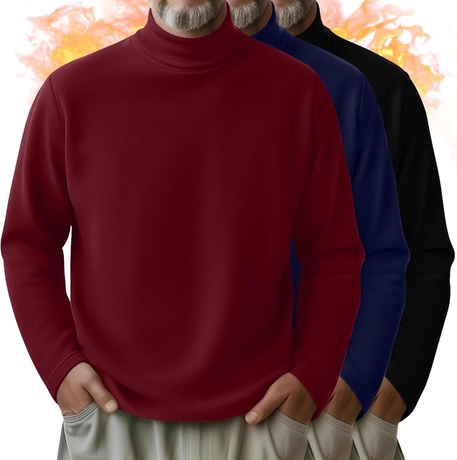 Features: Solid Color Style: The men's thermal pullover sweater is a classic solid color design that is both casual and practical, making it a proper choice for everyday wear. Easy Clean: Machine or hand washable, hang or line dry, no bleach, no dry clean, Iron on low heat. Specifications: Material: 70% Polyester, 20% Cotton, 10% Spandex Package Includes: 3 x Men's turtle neck tops Notes: Manual measurement, please allow slight errors on size. The color may exist a slight difference due to different screen displays Please do not wash our products with other clothes, and bleaching is not allowed